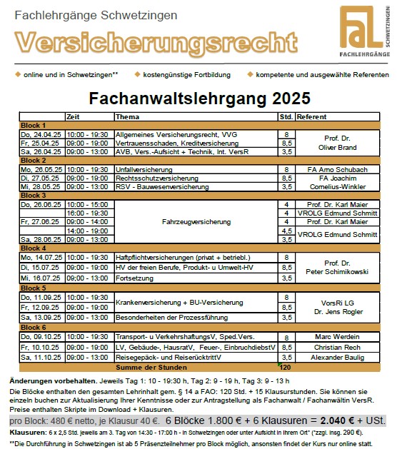 Fachanwaltslehrgang Versicherungsrecht