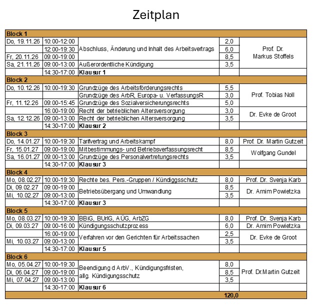 Thema: Fachanwaltslehrgang Arbeitsrecht 2026