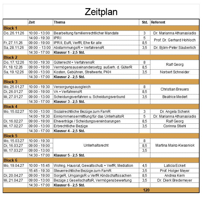 Thema: Fachanwaltslehrgang Familienrecht 2026/2027